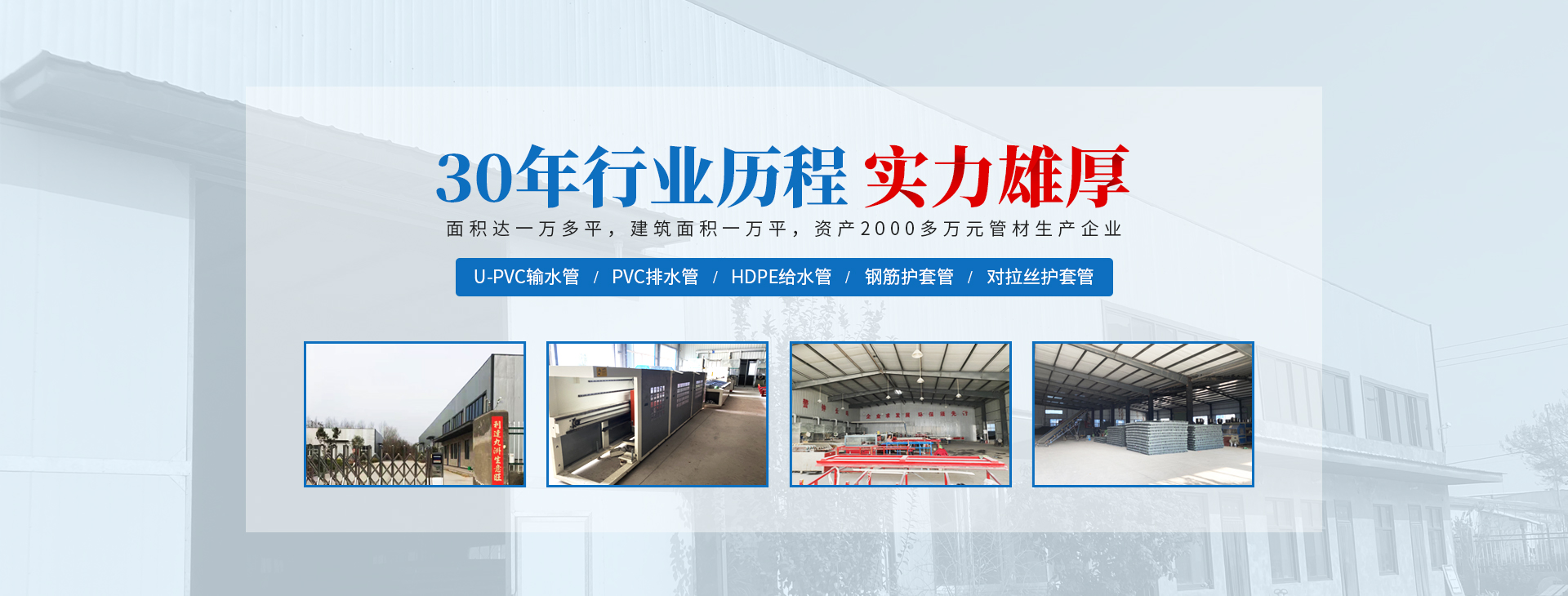 安陽(yáng)市祝豐塑化有限公司坐落在滑縣工業(yè)園區(qū),東臨大廣高速,西臨京珠高速,是鄭州、鶴壁、安陽(yáng)、濮陽(yáng)四個(gè)城市的輸紐,交通便利、環(huán)境優(yōu)美。 公司始建于八十年代,經(jīng)過(guò)二十余年的艱辛創(chuàng)業(yè),規(guī)模不斷壯大,由十多萬(wàn)元資產(chǎn)的小廠(chǎng),發(fā)展到現(xiàn)占地面積達(dá)一萬(wàn)多平,建筑面積一萬(wàn)平,資產(chǎn)2000多萬(wàn)元管材生產(chǎn)企業(yè)。公司生產(chǎn)PVC-U、PVC排水管、HDPE給水管、鋼筋護(hù)套管管道通訊管材等產(chǎn)品,廣泛用于農(nóng)田節(jié)水、高山引水、人畜用水、建筑、電力通訊等多種用途,品種齊全。為了滿(mǎn)足用戶(hù)需求,可承攬各種給水、節(jié)水、灌溉工程。“祝豐塑化”憑借強(qiáng)勁的實(shí)力,優(yōu)良的管理水平。“以質(zhì)量求生存,以信譽(yù)求發(fā)展”的原則全力以赴和大家共同塑造美好未來(lái)。..